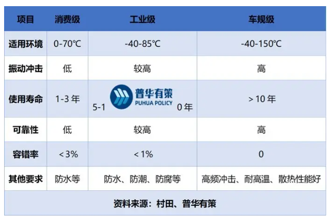 (1)磁性元件作为关键零部件,成为新能源产业链升级的重要环节磁性元件作为基础元器件之一,被广泛应用于传统家电、照明、消费电子等领域,不过该类消费级的磁性元件功率等级要求相对较低,规格和性能需求差异化不大。相较而言,工业级、车规级应用领域对于磁性元件的适用环境、振动冲击、使用寿命、可靠性以及容错率等方面性能要求较高,技术难度高。各级别磁性元件要求对比如下: