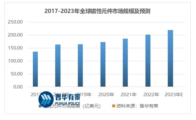 普华有策《2023-2029年新兴领域用磁性元件行业深度调研及投资前景预测报告》显示,预计2023年全球磁性元件行业市场规模将达219.09亿元。